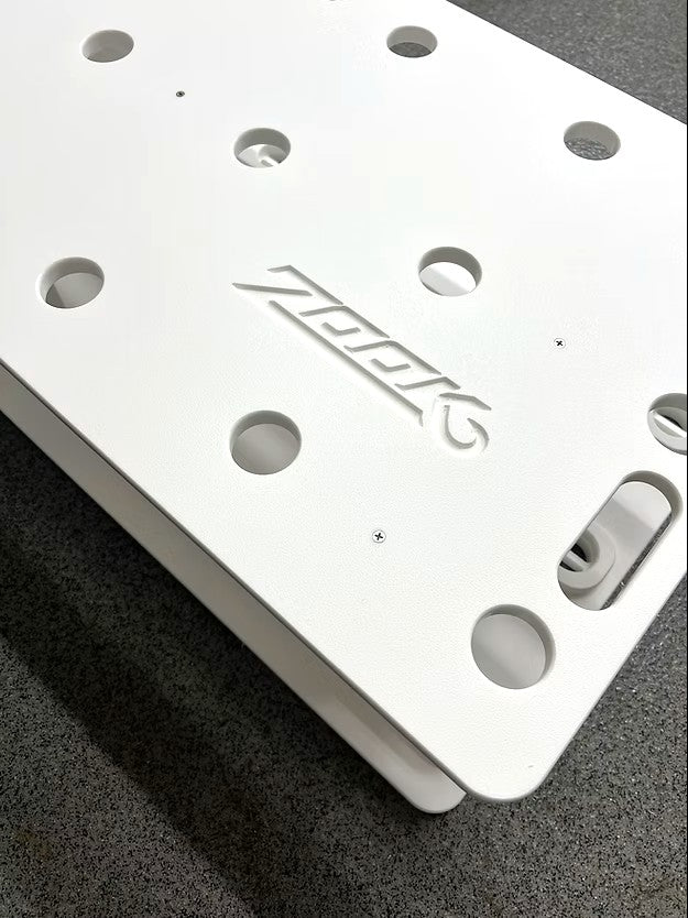 Crafted from marine grade HDPE, this caddie features 18 CNC cut slots with integrated gimbal mounts to keep your rods aligned and securely in place. Four heavy duty handles make it easy to carry and also serve as convenient tie-down points for securing it to your truck bed or dock.
